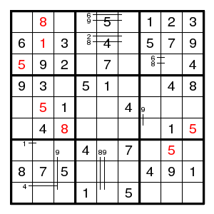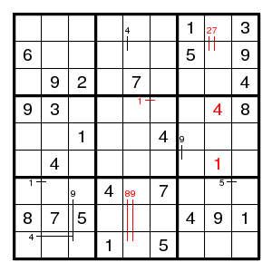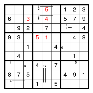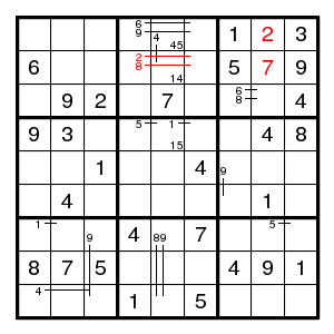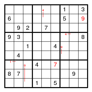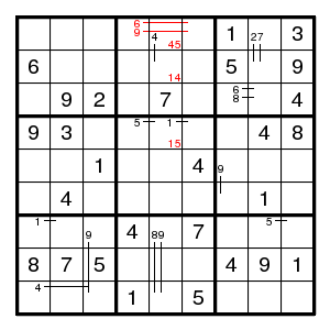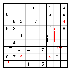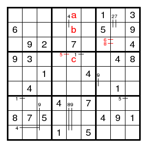 The digits 1,4,5 in column 5 must be in the positions a,b,c, and nothing else is in these positions.