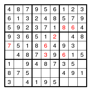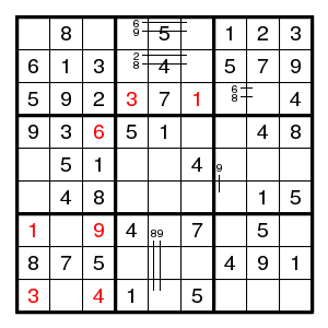 That was the end of the work, all the rest is straightforward. (A 3 and 4 in row 2, a 5 and 1 in column 5, ...)