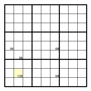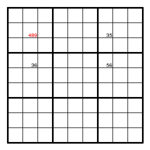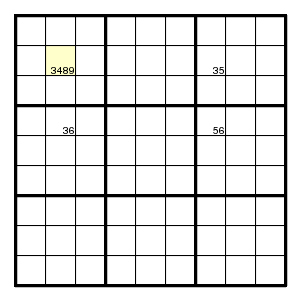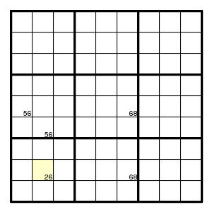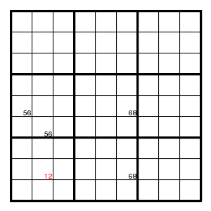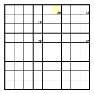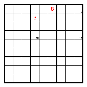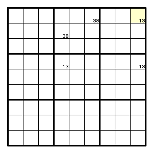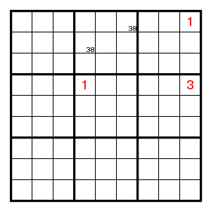 For example, the cycle 13-31-13-38-83-31 starting and ending in the yellow square, forces the digits in red: