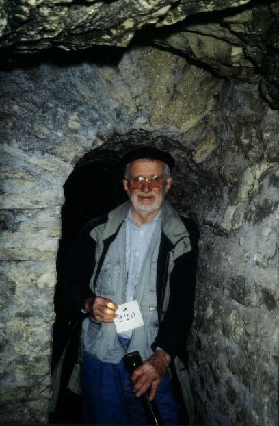 About 180 metres from the end of the tunnel (always according to the splendid diagrams and maps of Kienast) we gave up. The tunnel was becoming very narrow, and I in particular was feeling claustrophobic. It would continue to be that narrow, or even get worse, according to Kienast's plans, so Jean accepted my plea that we turn back. Jean is shorter than I am, and had hit his head once or twice, painfully: but I had done it even more often, and had sore bumps on my head for several days. (A Dutch friend in Italy, who used to be a mining engineer, remonstrated with me later: `you guys should have had helmets'. Quite right.) We watched for the bat on the return but didn't see it.