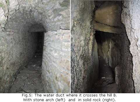 The duct crosses the first ravine, (A) on the map, in a stone channel