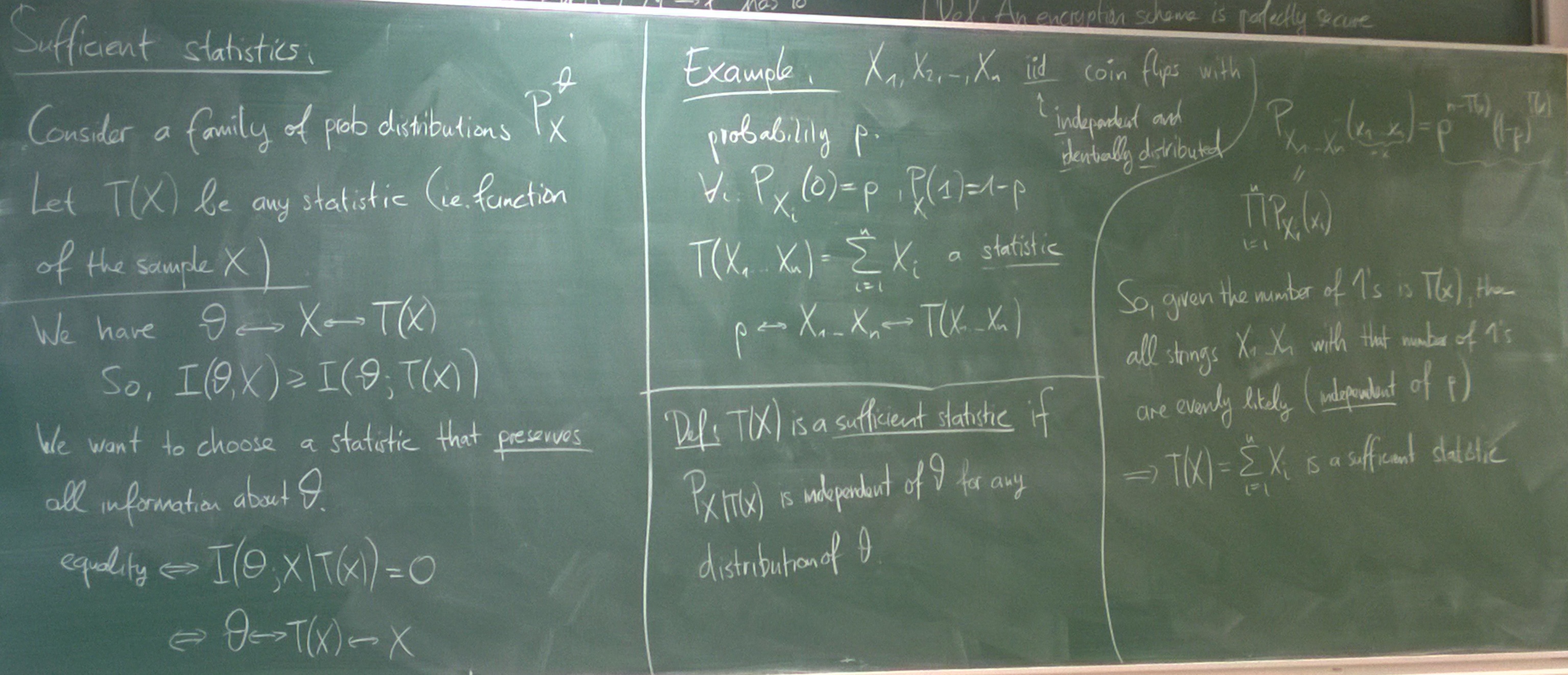 Data-Processing Inequality, Sufficient Statistics, Perfectly Secure Encryption: One-time pad