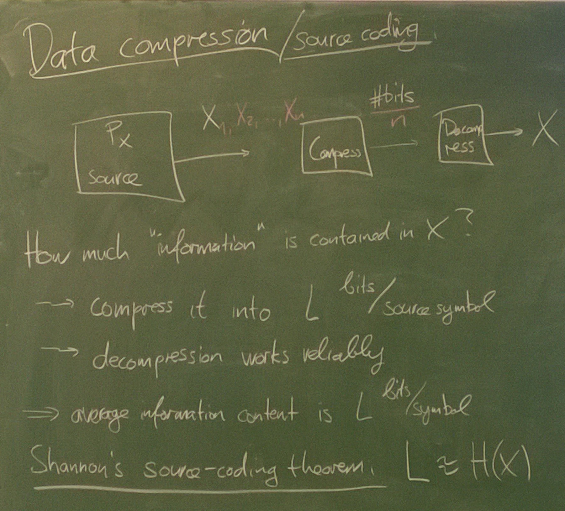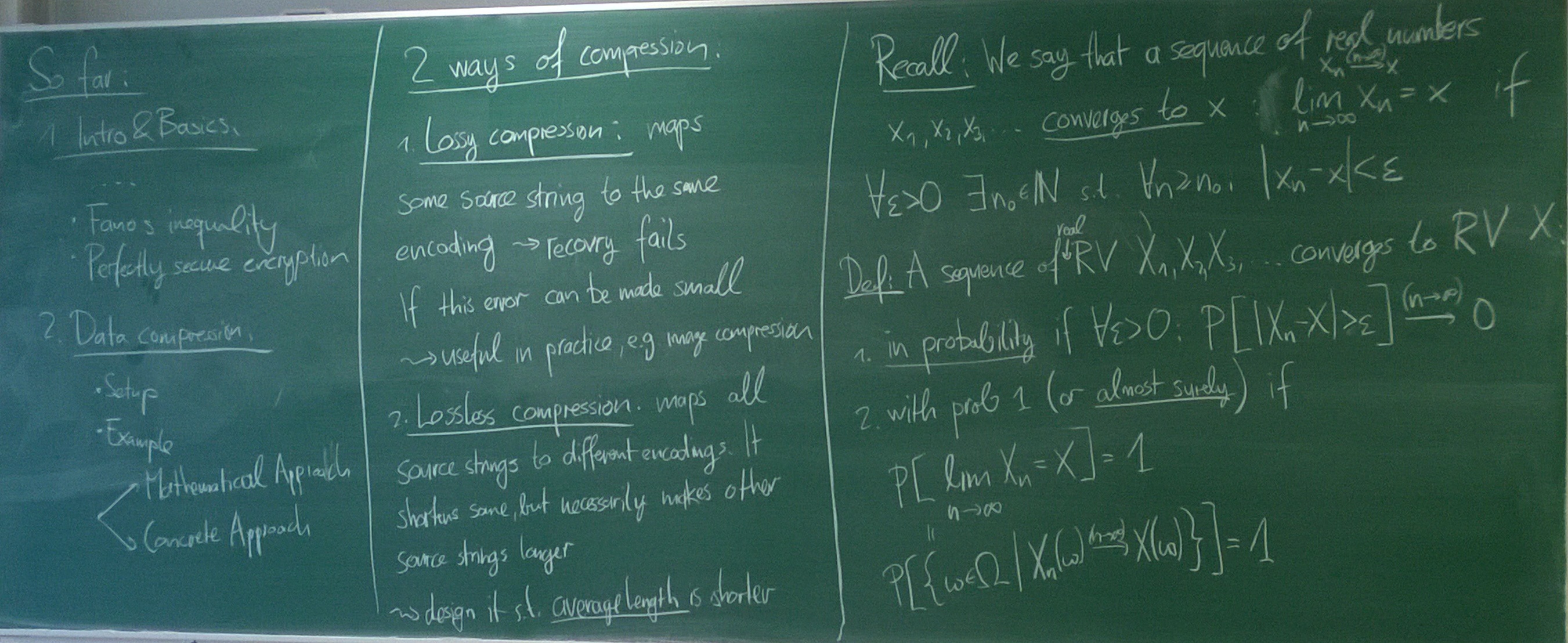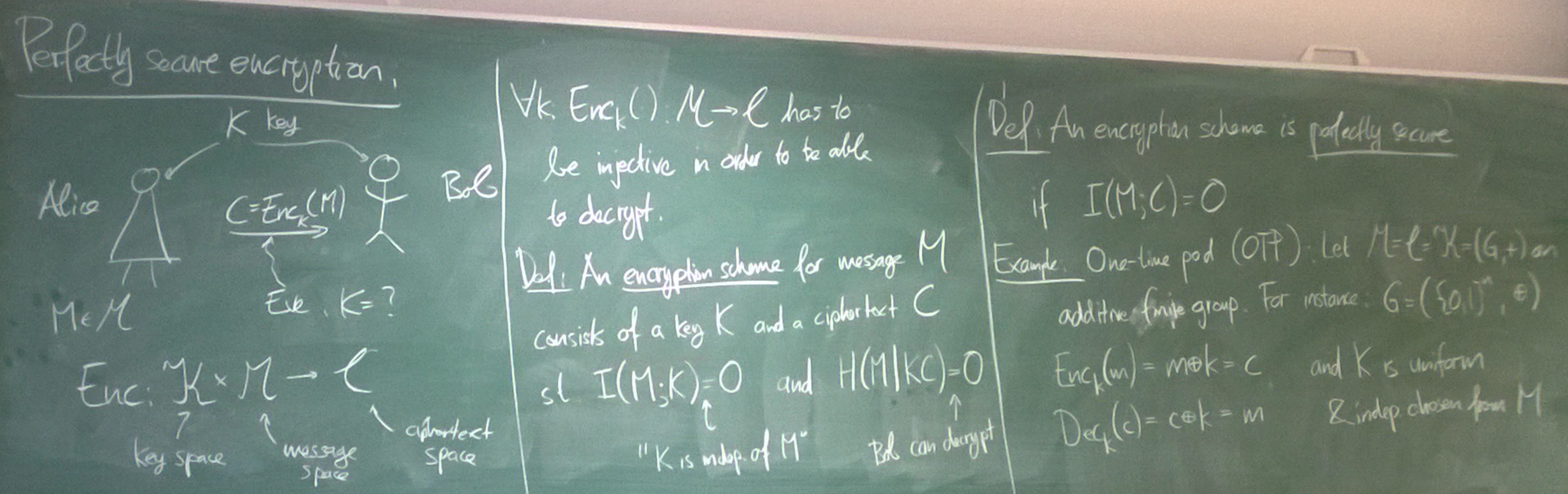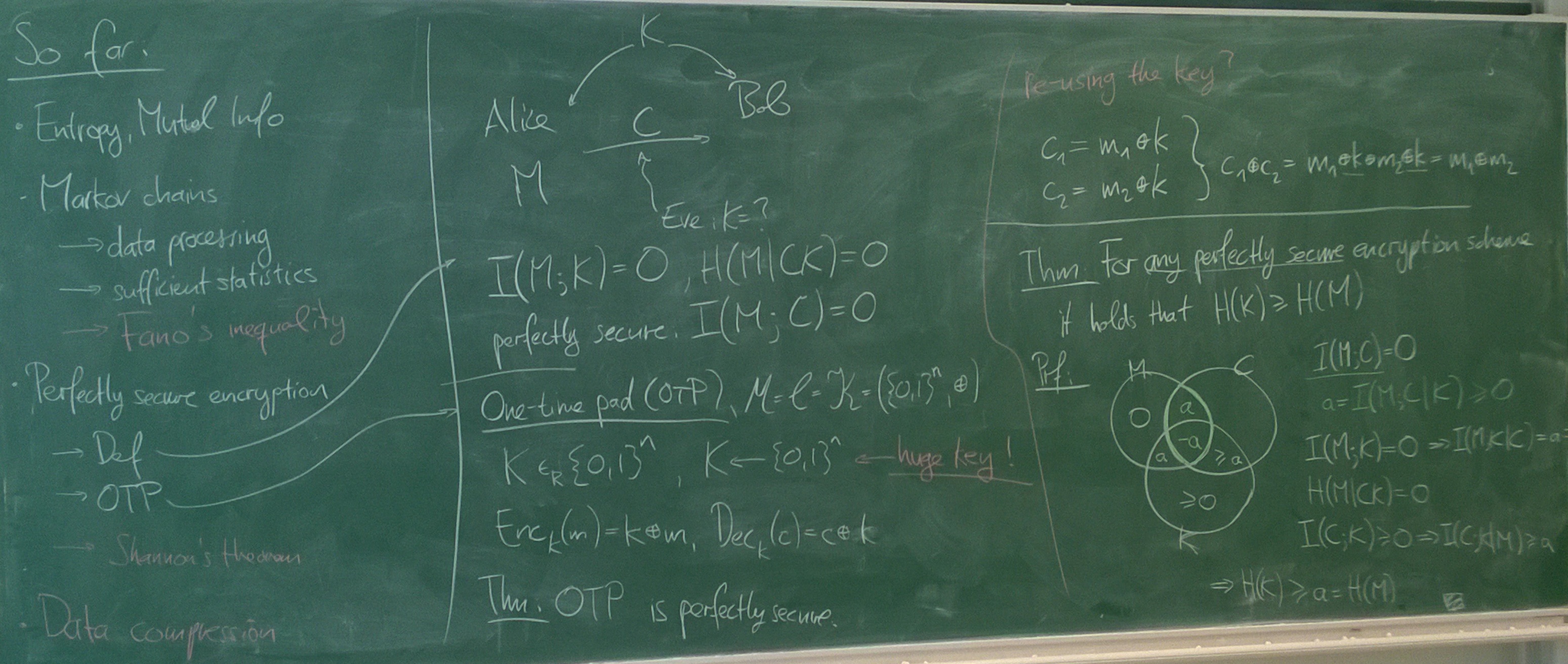 Perfectly Secure Encryption: Shannon's theorem. Fano's inequality. Data compression / Source coding