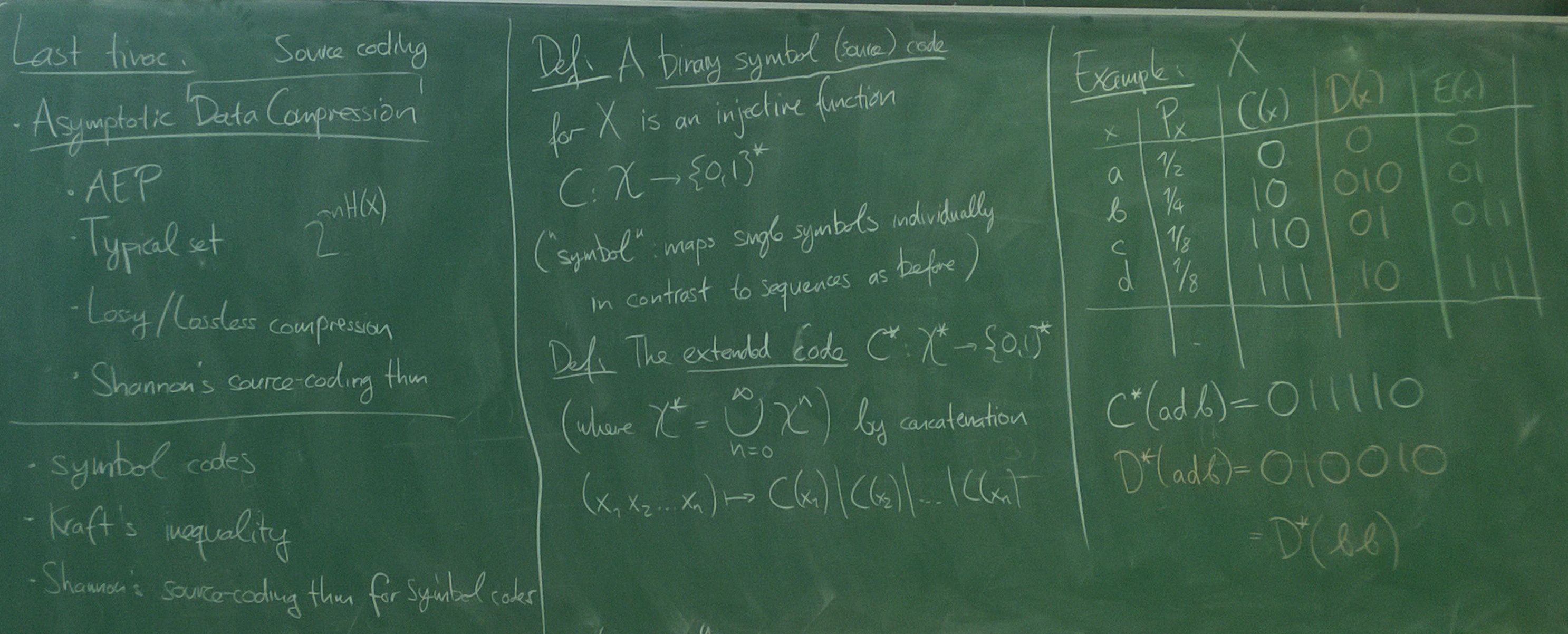 Data Compression: symbol codes, properties, source-coding theorem reloaded, Kraft's inequality