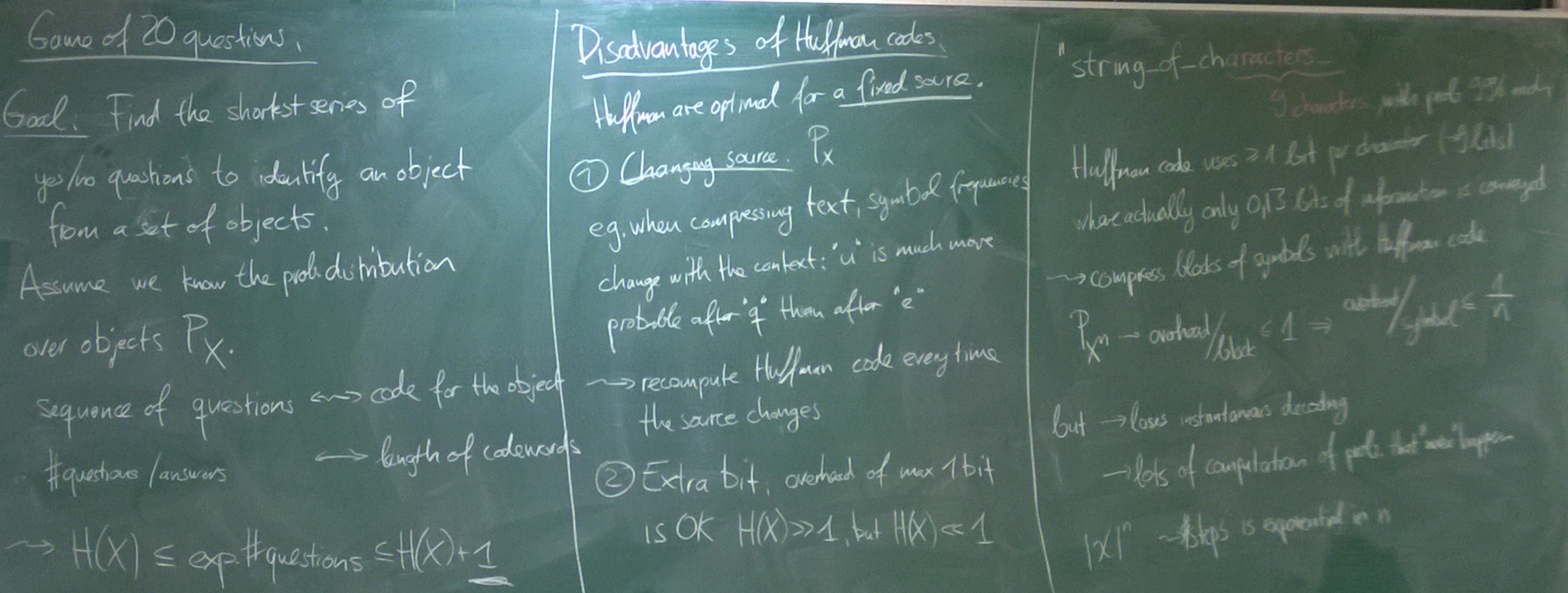 Huffman codes and their optimality, Game of 20 Questions, Arithmetic Codes